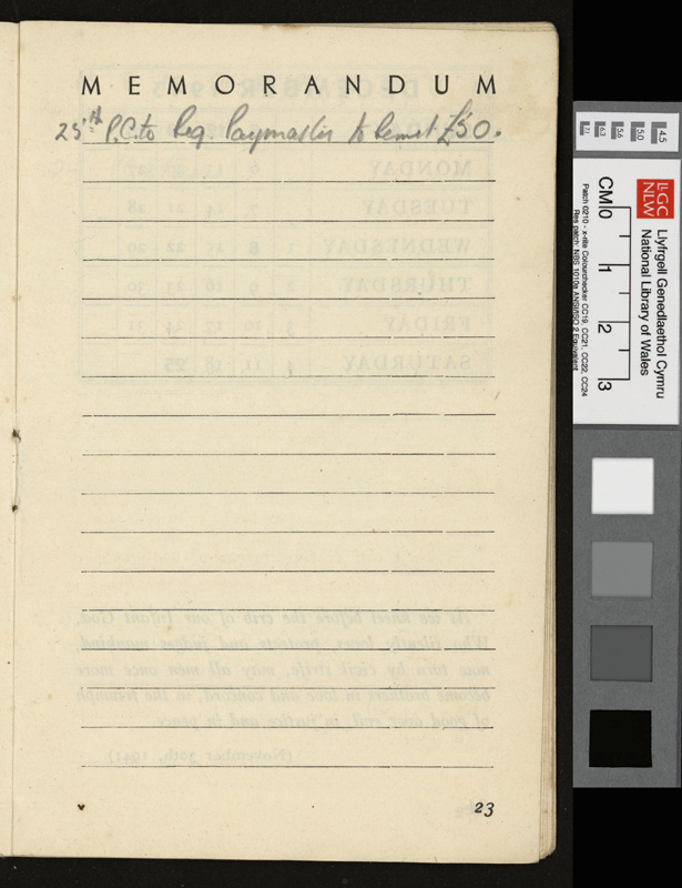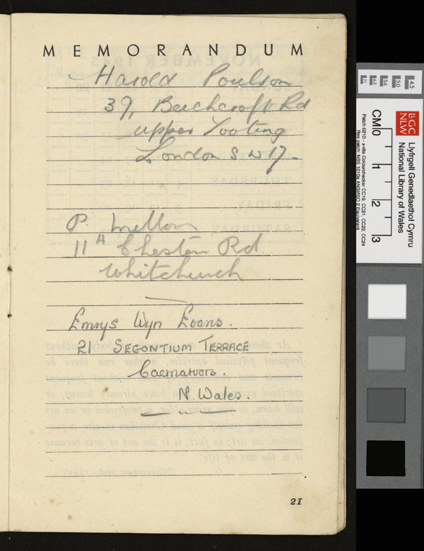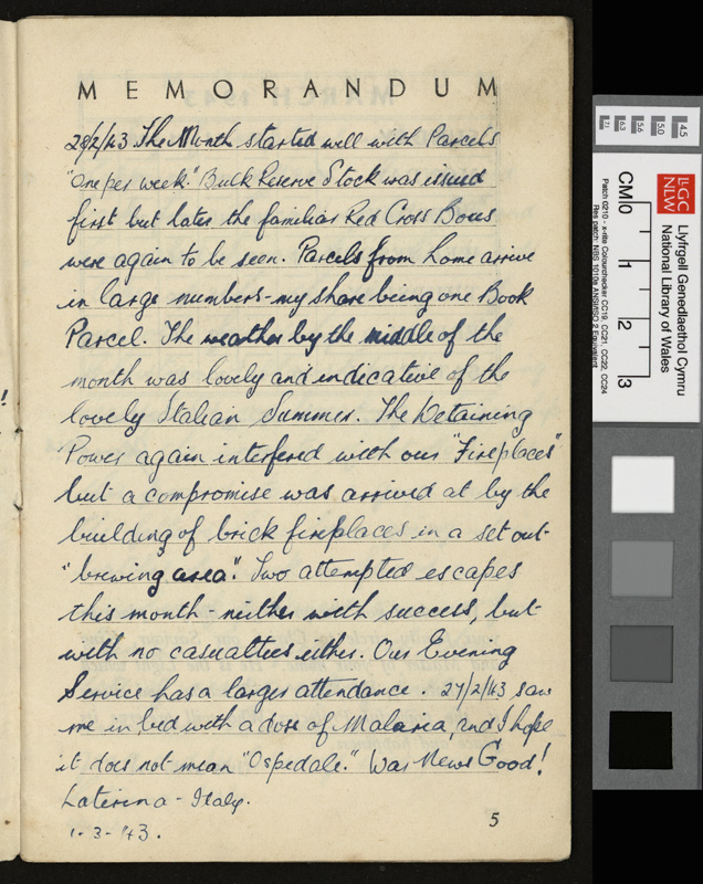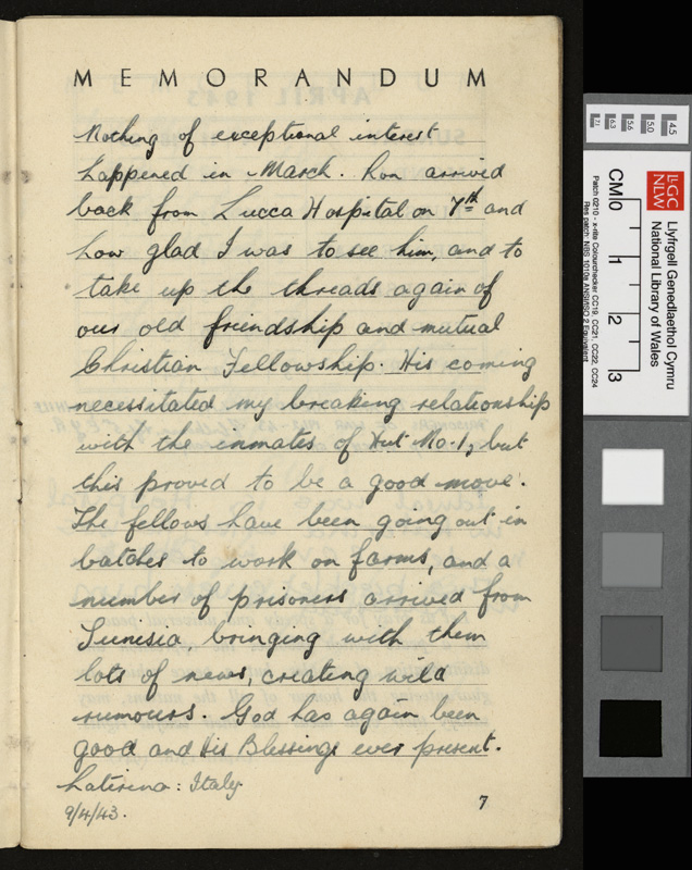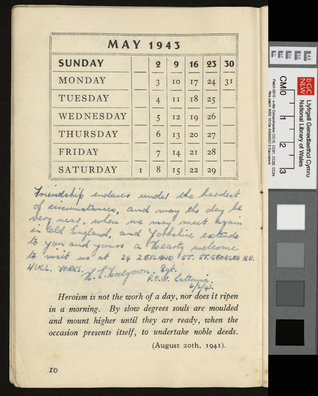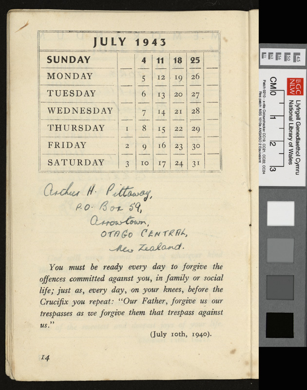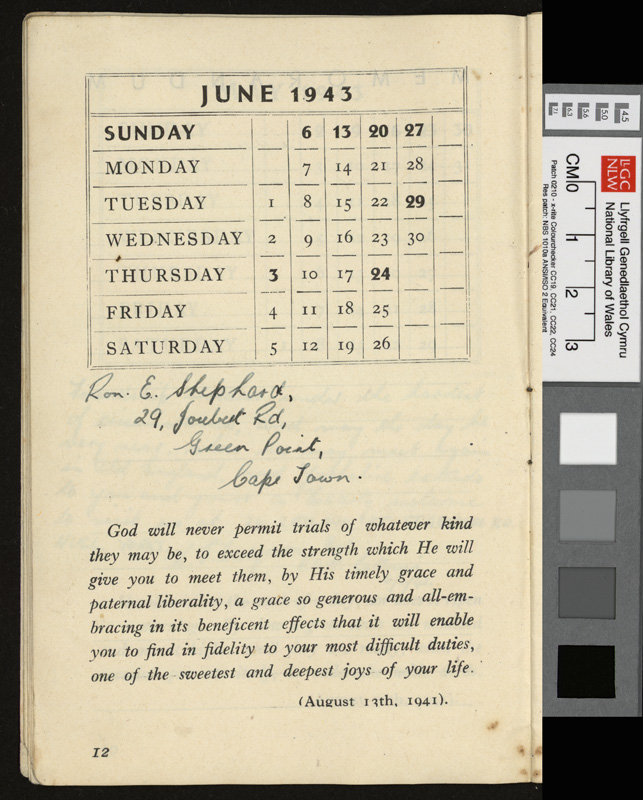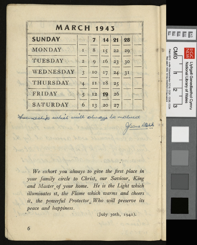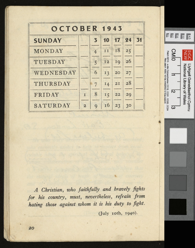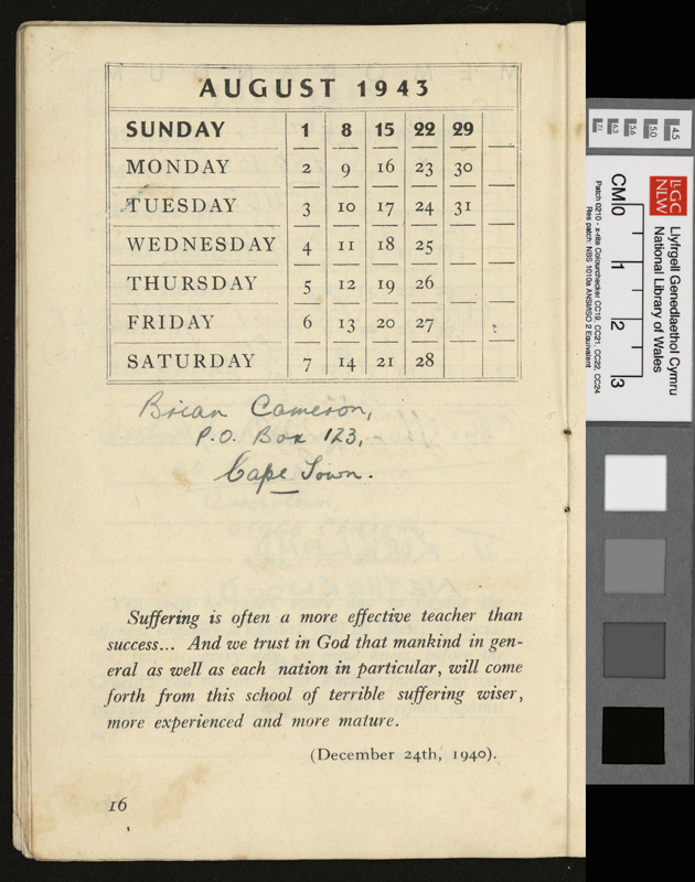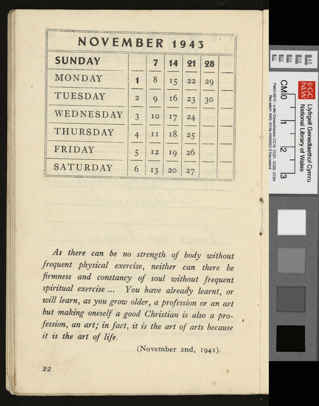 A pamphlet given as a gift to every prisoner of war in Italy by Pope Pius XII at Christmas 1942, including a calendar and a number of Christmas Carols. It contains notes by Idwal Davies as well as comments by other prisoners and various addresses, 1943.